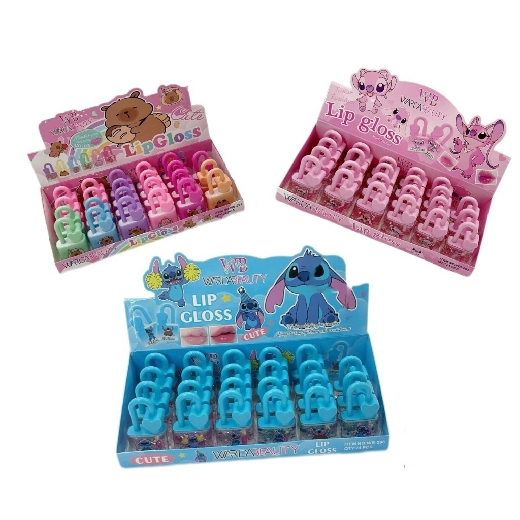 Comprar na ShopeeBox C/24 Unis Gloss Cadeado Do Amor Animais Stitch/Capivara Pendure na Bolsa - Revenda