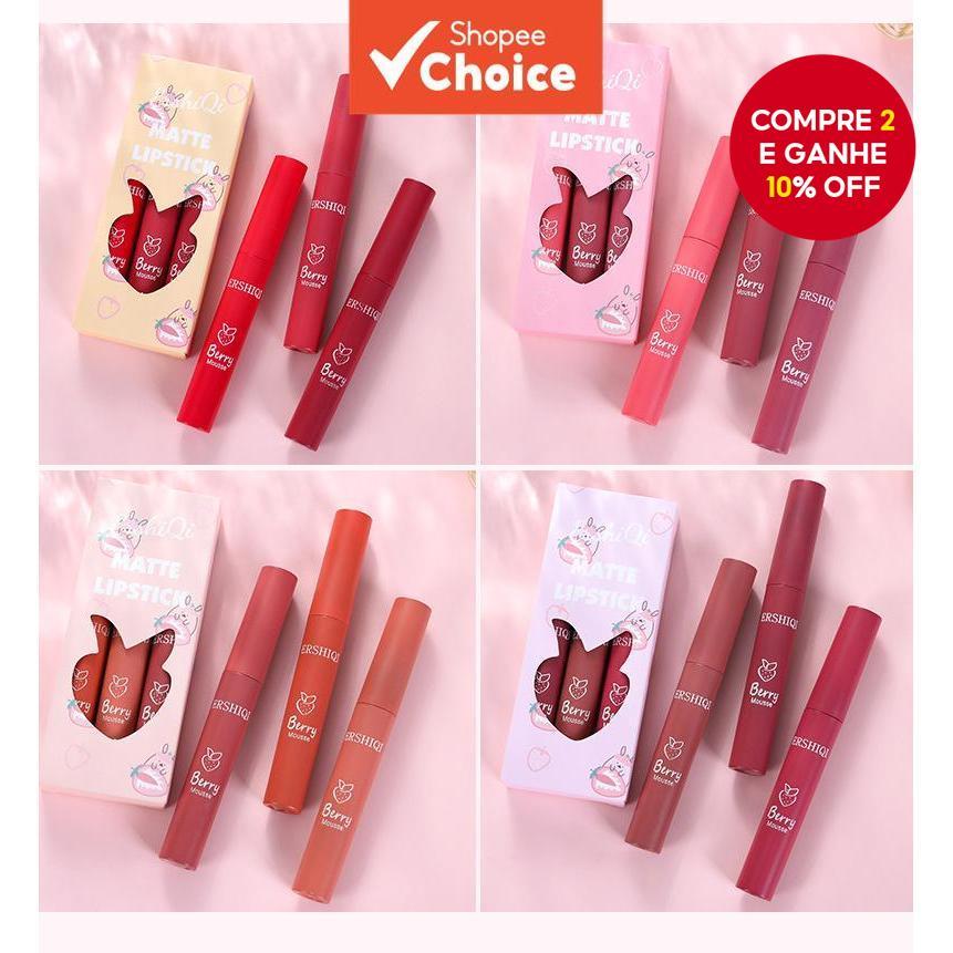 Comprar na ShopeeBatom De Maquiagem Antiaderente De Veludo Fosco Com 3 Pacotes
