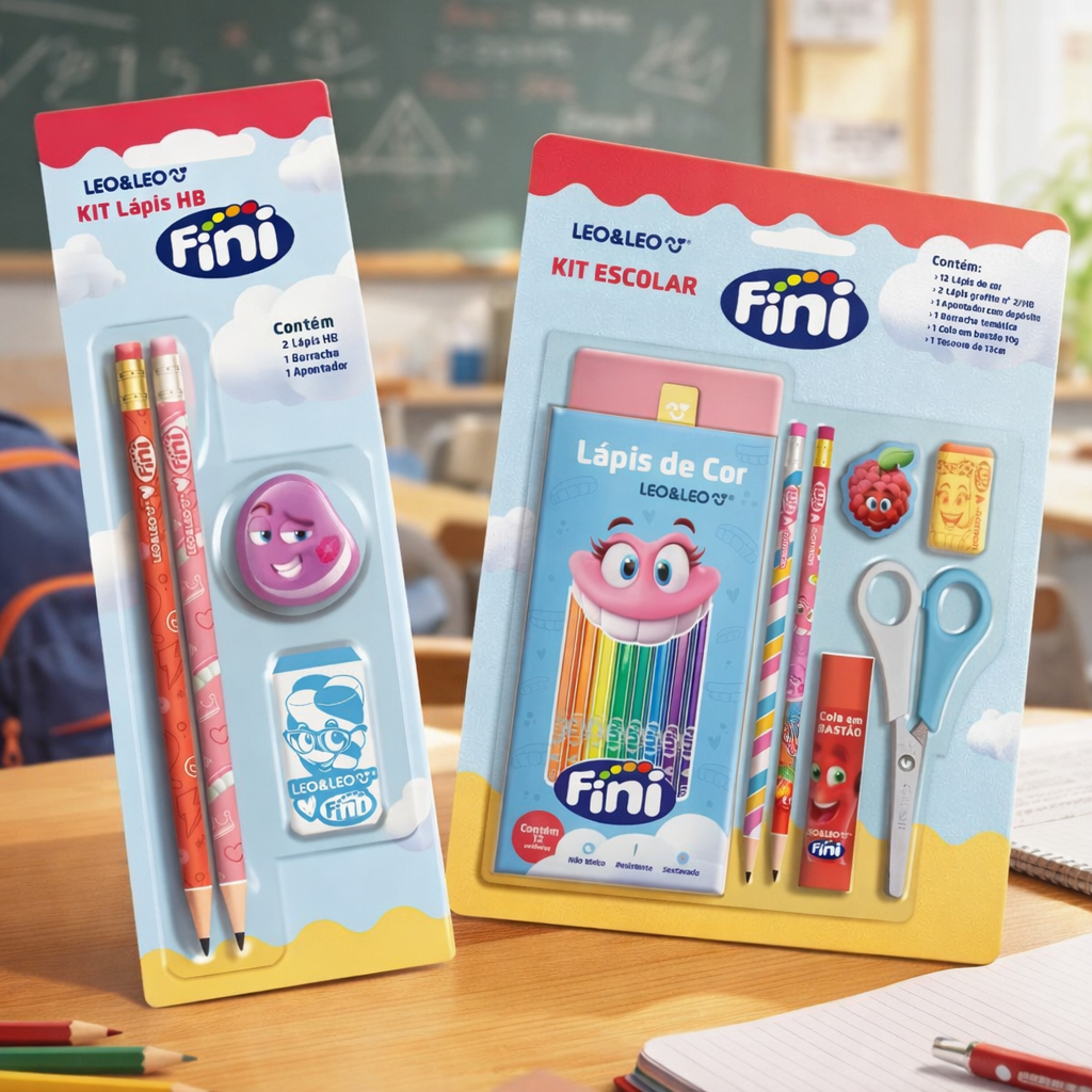 Comprar na ShopeeKit Escolar Fini Leo e Leo com Lápis de Cor Tesoura Cola e Acessórios