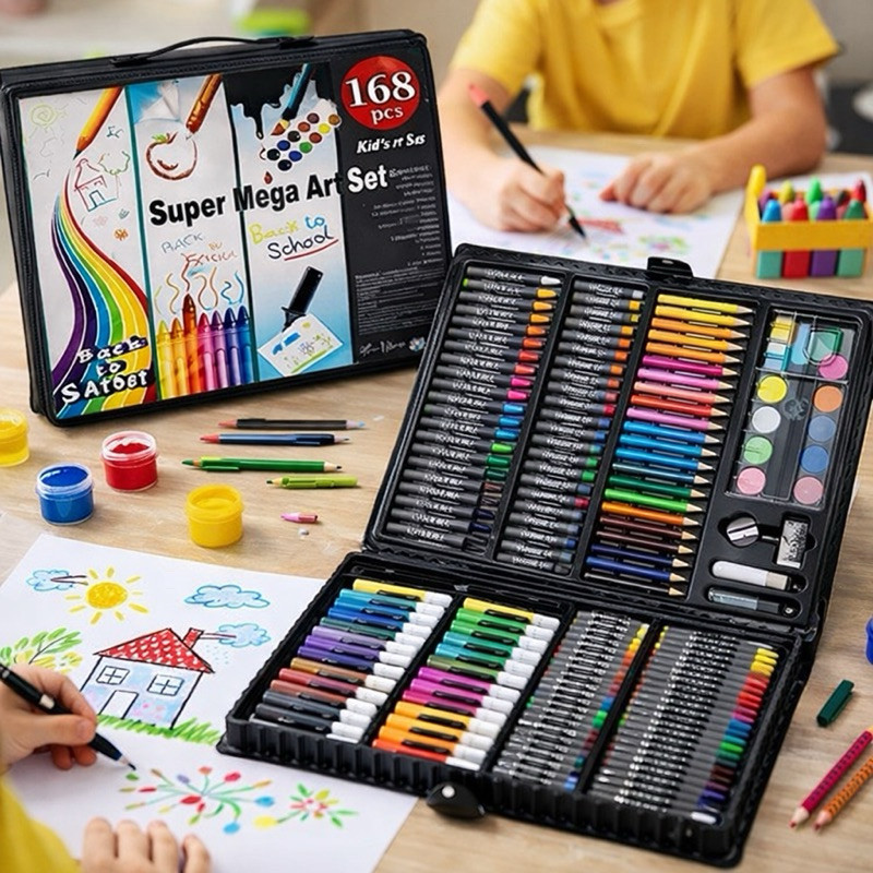 Comprar na ShopeeEstojo Escolar Maleta Pintura Infantil 168 Peças Canetinha Giz de cera Lápis de Cor Desenhos