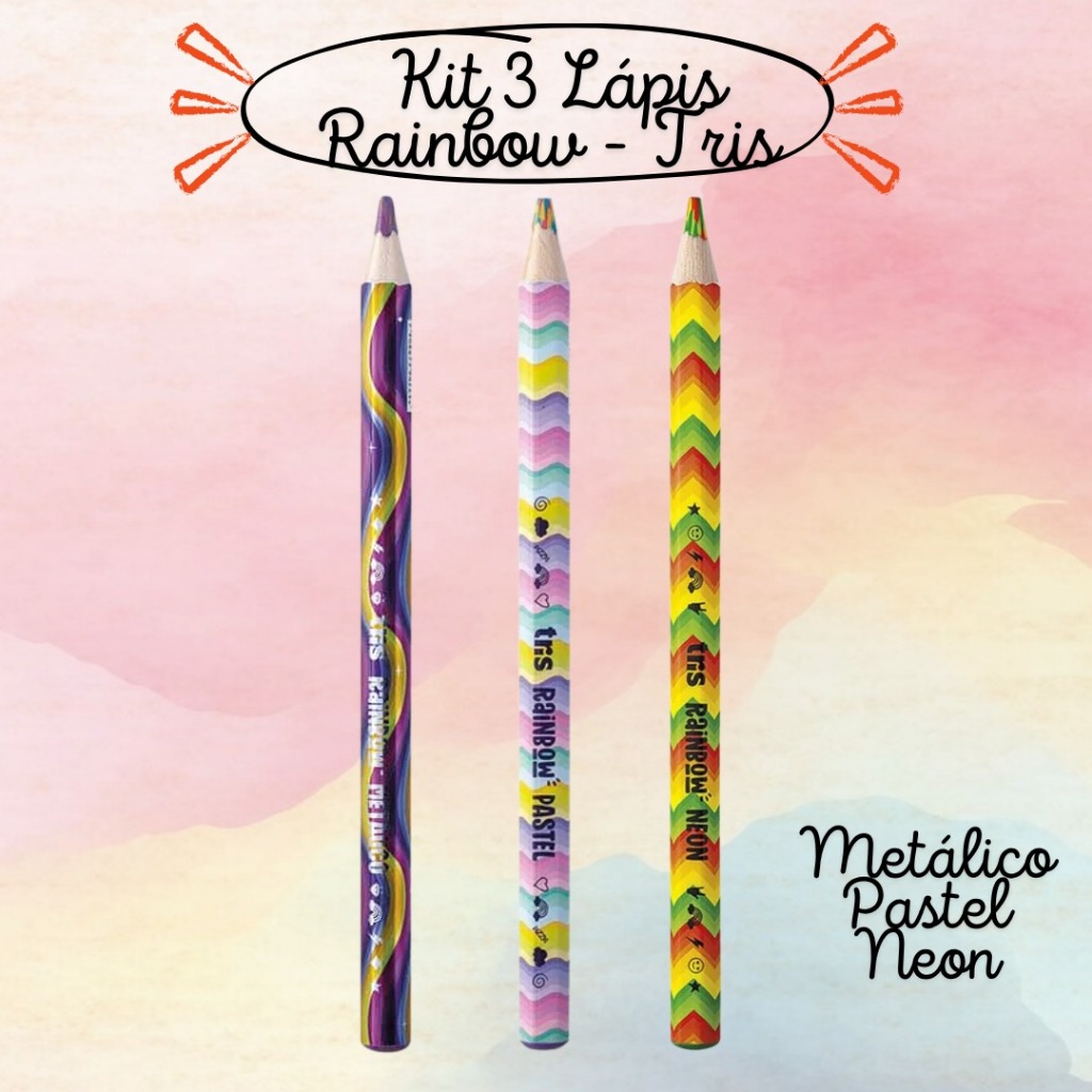 Comprar na ShopeeKit com 3 Lápis De Cor Jumbo Rainbow Neon, Pastel E Metálico ou Unitário - Tris