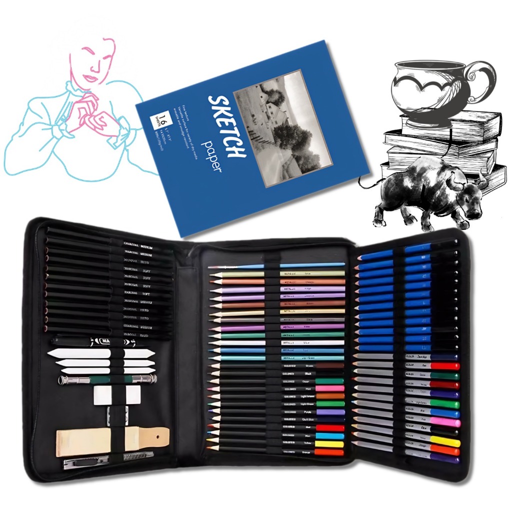Kit 71 Lápis de Desenho e Pintura + Sketchbook Grátis para Artistas e Estudantes