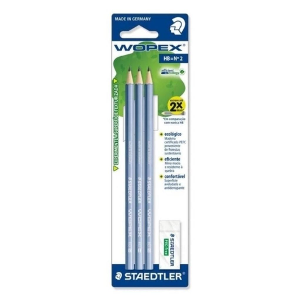 Comprar na ShopeeKit Lápis de Escrever + Borracha Staedtler Wopex - 3 Lápis Grafite + 1 Borracha
