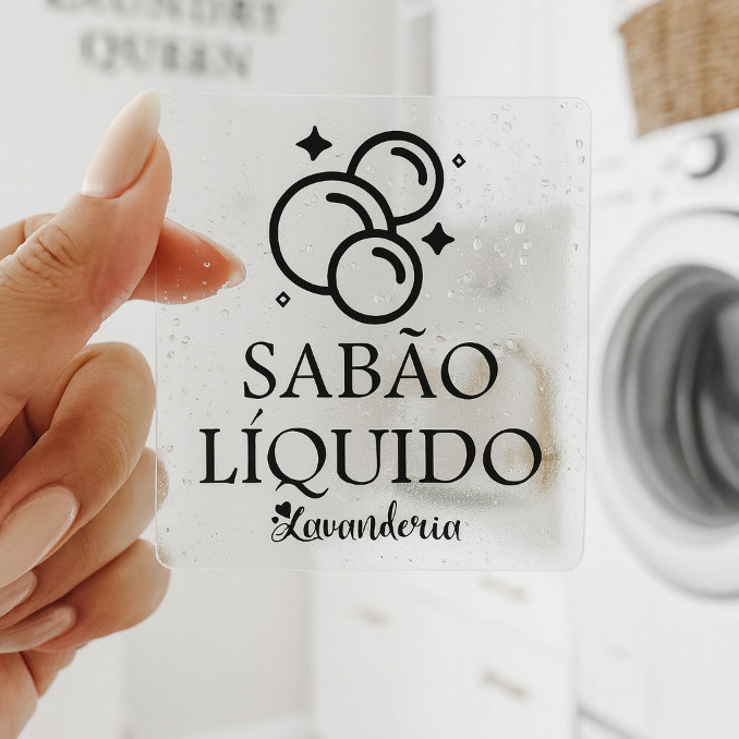 Comprar na ShopeeKit 24 Etiquetas Transparentes Lavanderia - Adesivo Organizador de Produtos de Limpeza Moderna 7x7cm