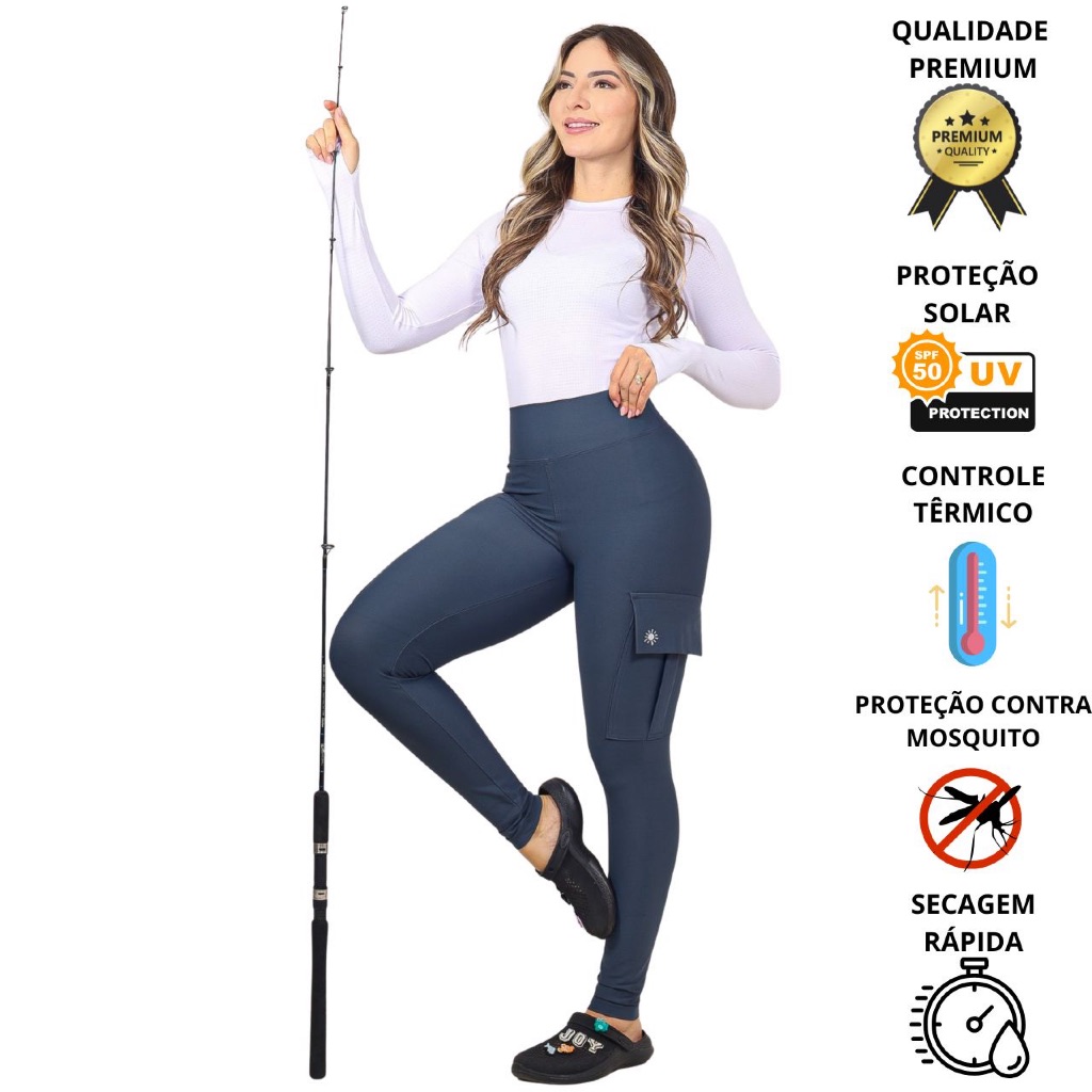 Comprar na ShopeeCalça de Pesca legging Feminina com Proteção Solar, Cintura Alta, Tecido Frio, Aventura e Camping