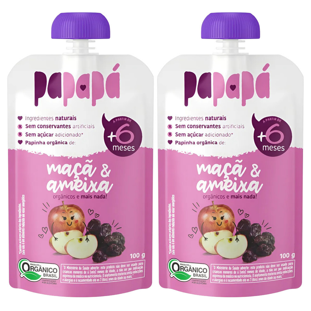Papinha Orgânica Maçã & Ameixa Papapá Squeeze 100g KIT C/2
