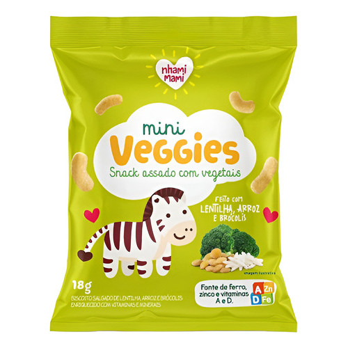 Kit Snack Infantil Sem Glúten Ervilha e Brócolis - Mini Veggies Nhami Mami 3 Unidades 18g