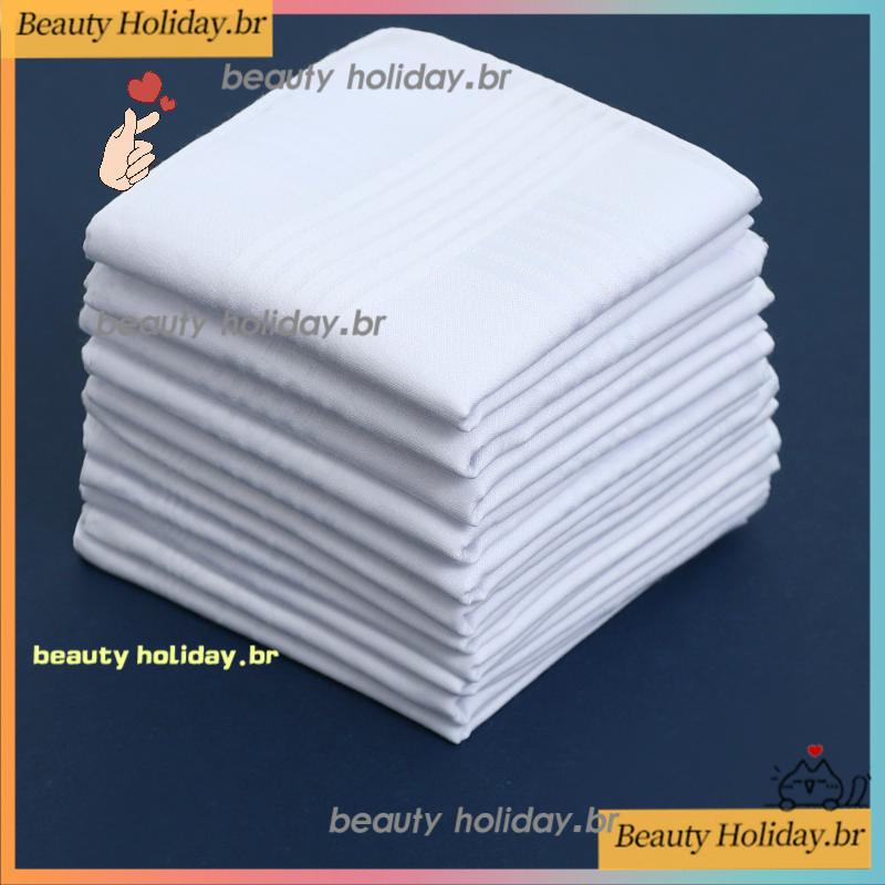 [Thm] 6/12 Unidades De Lenços Brancos Puros Masculinos , Lisos Femininos De Algodão Puro , Bolso Com Aba , Calças , Cac