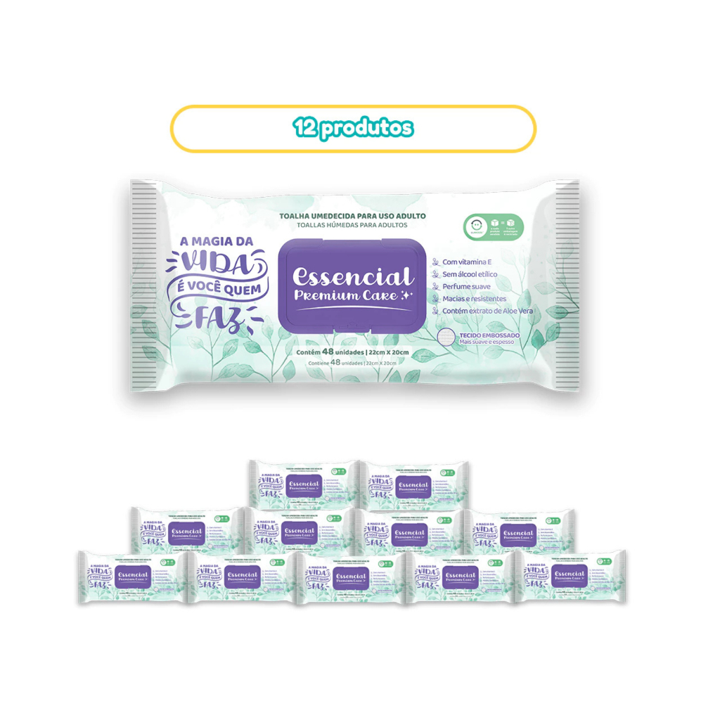 Comprar na Shopee12 Pacotes de Toalhas Umedecidas Adulto 48fls Essencial Care