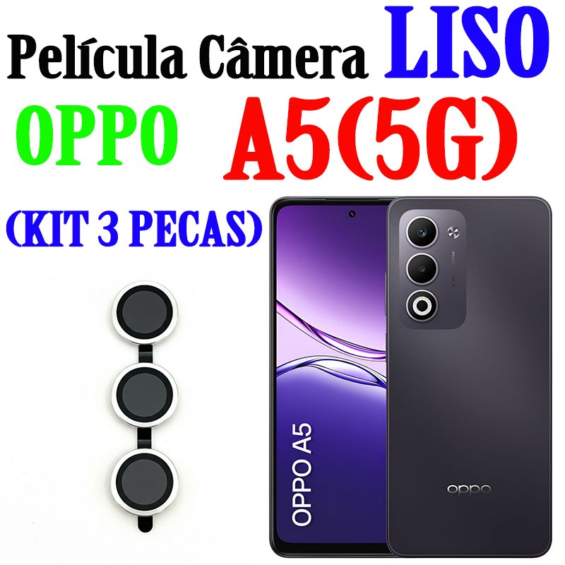 Comprar na Shopee(KIT3PCS)Película De Câmera Liso P/ OPPO A5(5G) Protetor De Lente Com Anel De Metal Vidro Temperado