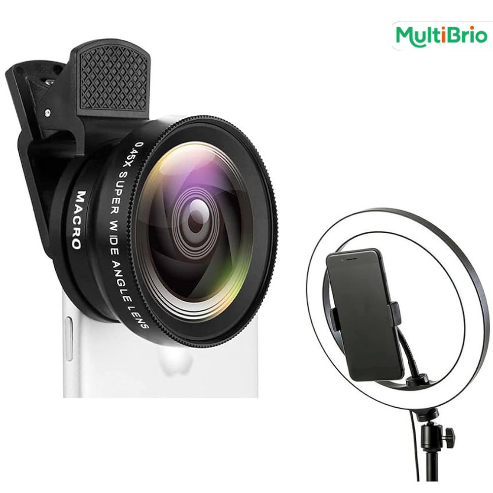 2 Em 1 Kit Clip De Lente Do Telefone Móvel Externo HD Macro 37mm 49UV 0.45x Super Grande Angular 12.5x Da Câmera
