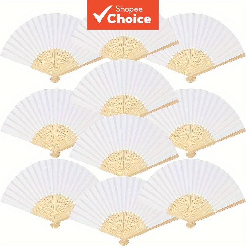 Comprar na Shopee10 Peças Leques Dobráveis Brancos Com Detalhes Dourados De Papel De Bambu Em Branco Para Casamentos Festas Presentes Lem