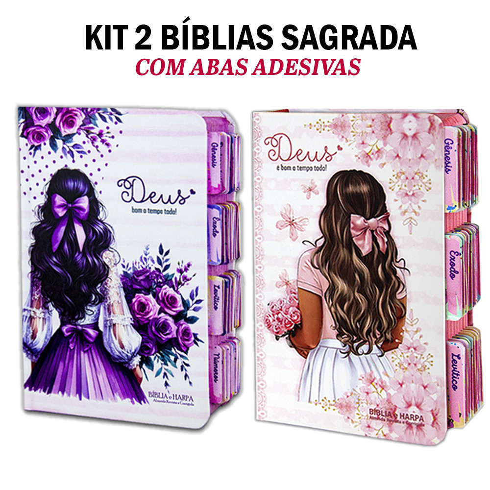 Comprar na ShopeeKit 2 Bíblias Letra Grande | Ed. Promessas - ARC - índice com Abas Adesivas - Harpas - Aquarela e Lilás
