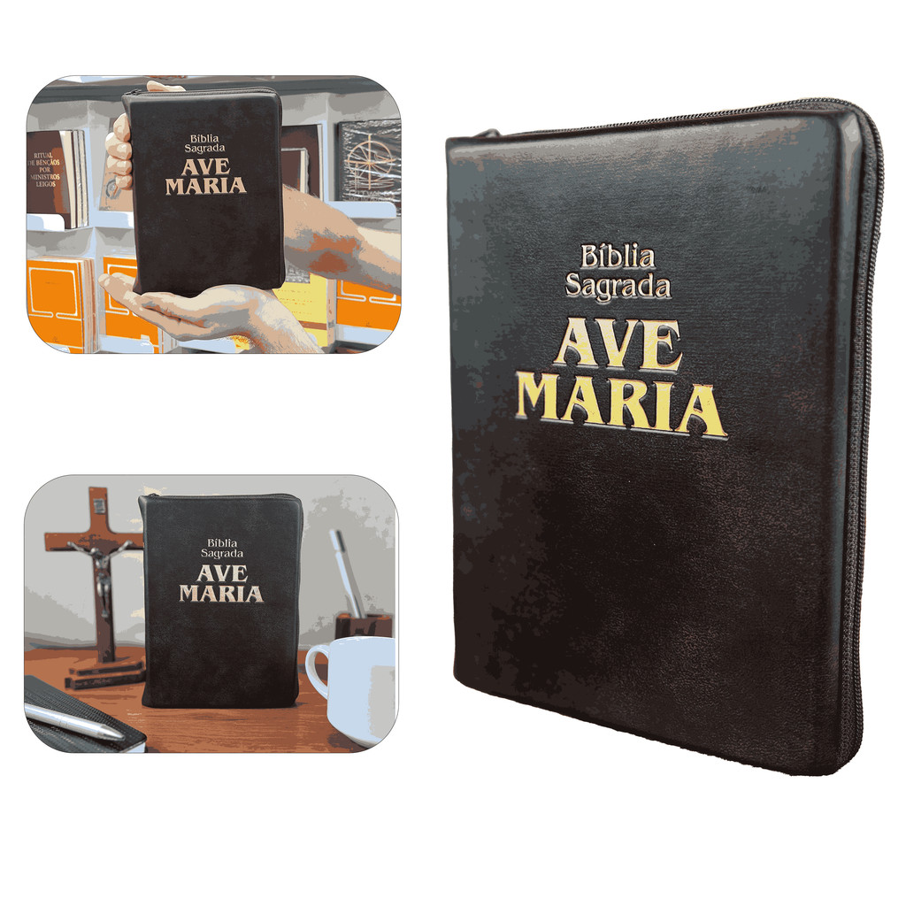 Bíblia Sagrada Ave Maria Marrom Tamanho Médio Zíper