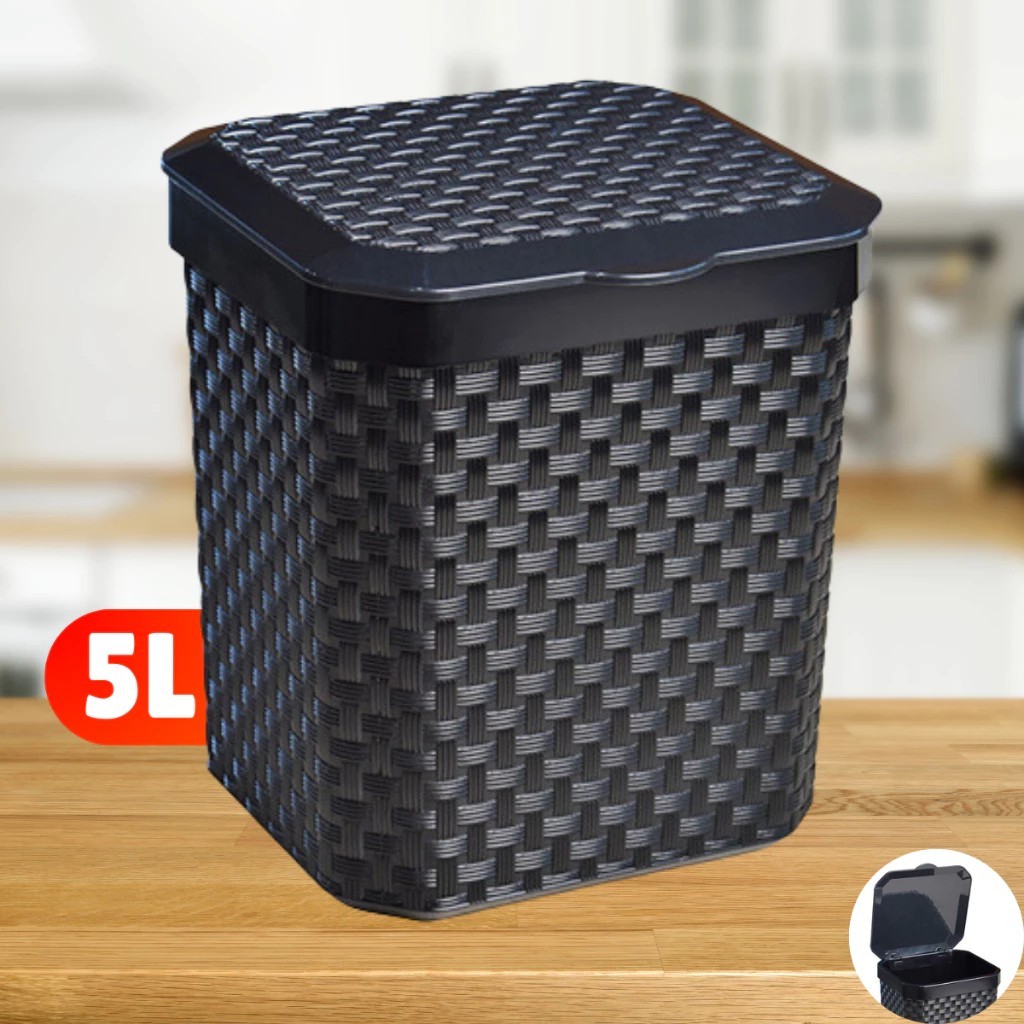 Comprar na ShopeeLixeira Rattan 5 Litros com Tampa Preta – Multiuso para Cozinha e Banheiro