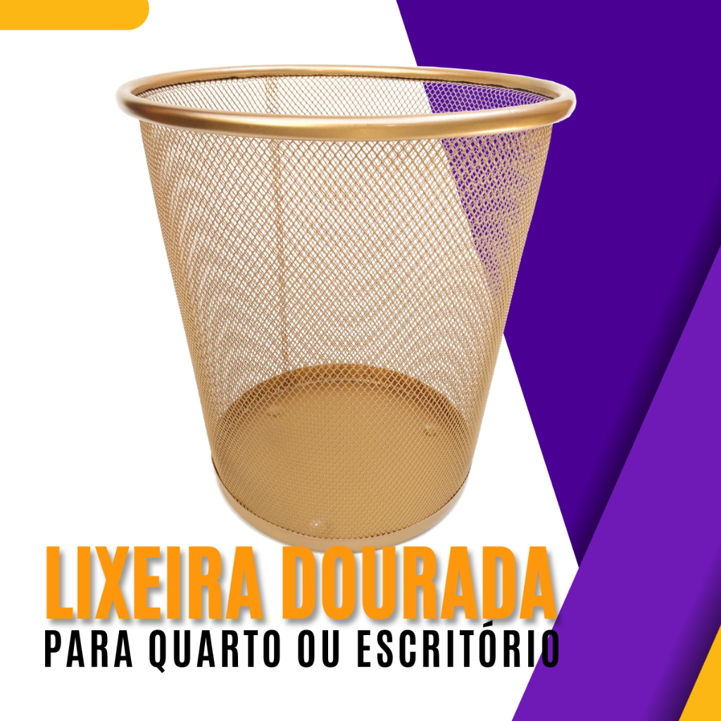 Comprar na ShopeeLixeira Aramada para Escritório Cozinha Banheiro 10 litros em Metal Dourado