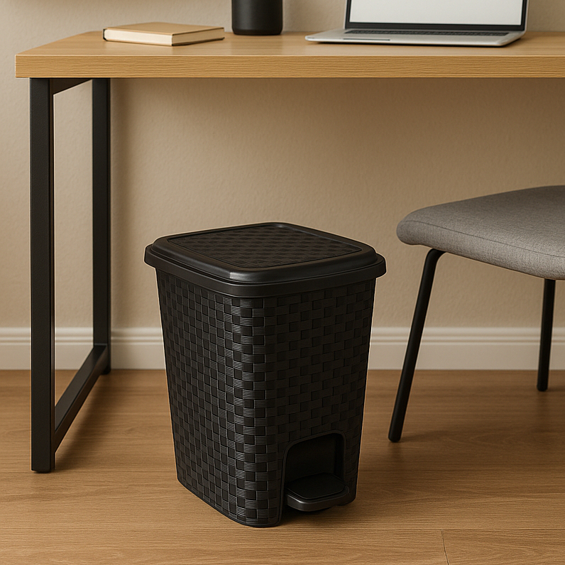 Lixeira Pequena Escritório Rattan Multiuso 7 Litros Cozinha Banheiro com Tampa Pedal Arqplast