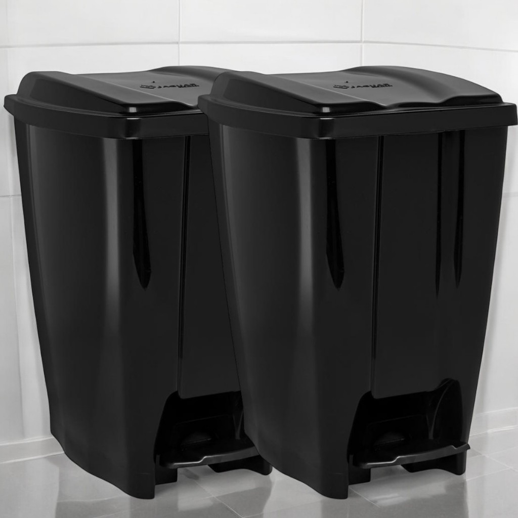 Comprar na ShopeeKit 2 Lixeiras com Pedal e Tampa 20 Litros em Plástico Resistente Banheiro Cozinha Multiuso Grande
