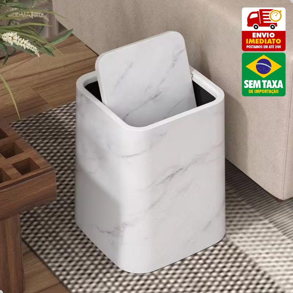 Comprar na ShopeeLixeira Basculante Design Mármore 26cm Plástico Banheiro Lavabo Cozinha