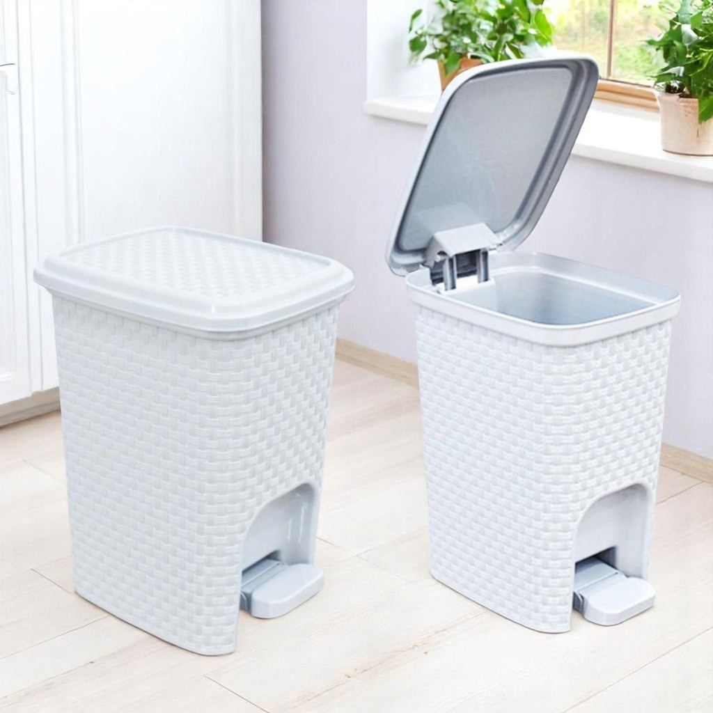 Lixeira 7L Com Pedal Tampa Rattan Para Cozinha Banheiro Escritório Compacta