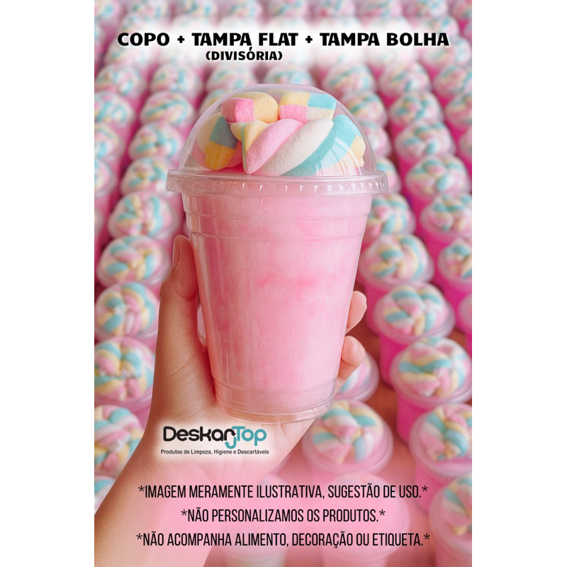 Comprar na ShopeeKit Copo Bolha + Tampa Flat Divisória 300ml/400ml/500ml para Doces Copo da Felicidade