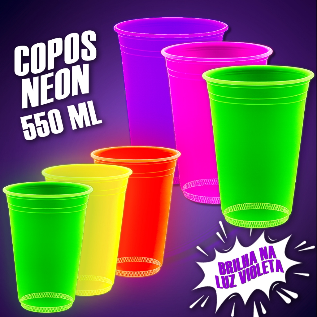 50 Copos Neon 550 ML Descartáveis Brilha na Luz Violeta