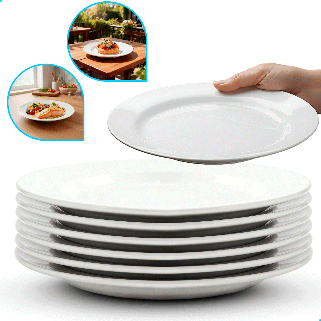 Jogo Kit 06/12/24UN Pratos Raso / Fundo Branco Vidro Duralex Menu Temperado Opaline Almoço Jantar Hotel