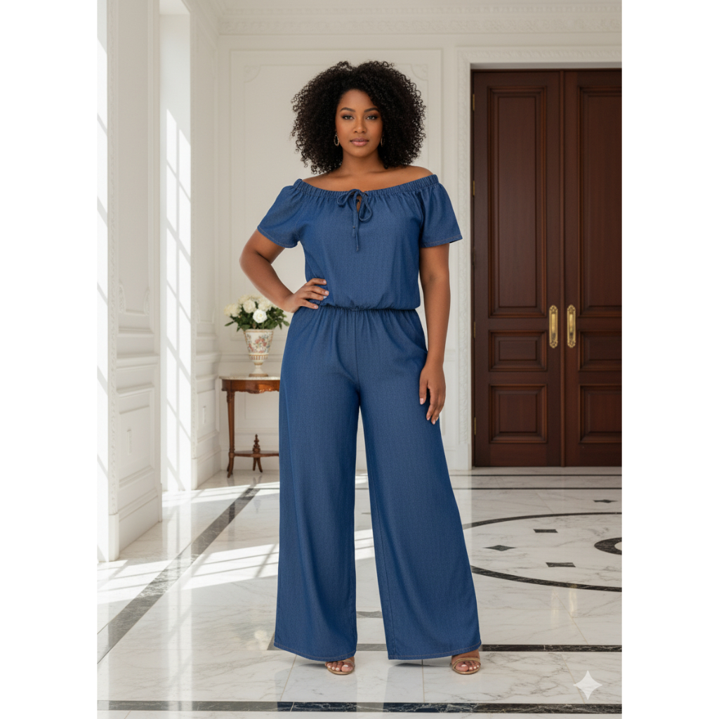 Macacão Feminino Longo Plus Size Manga Bufante Princesa Com Cinto PROMOÇÃO
