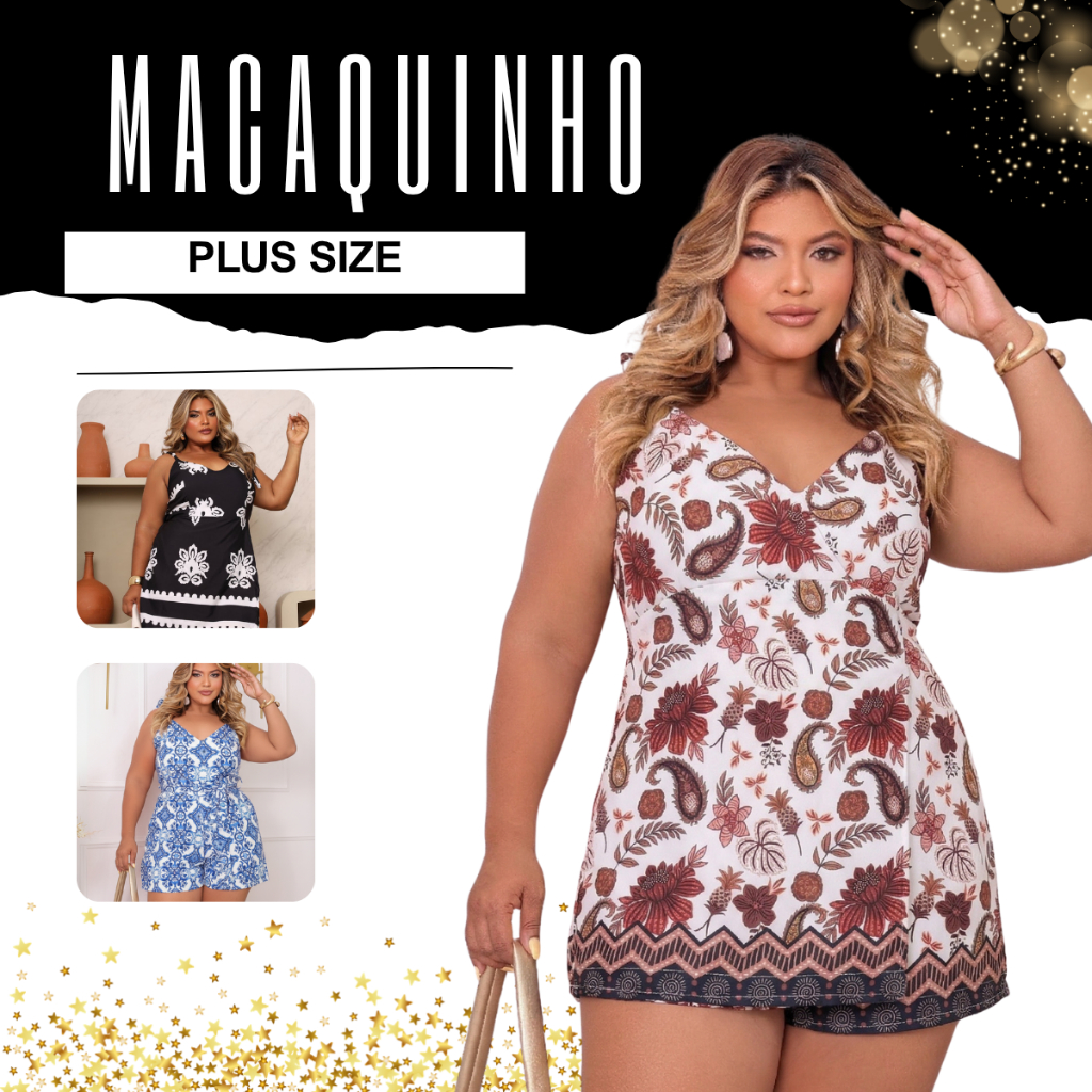Comprar na ShopeeMacaquinho Macacão Plus Size Estampado Short Saia Alça Larga All Cuve Verão Leve Fresco
