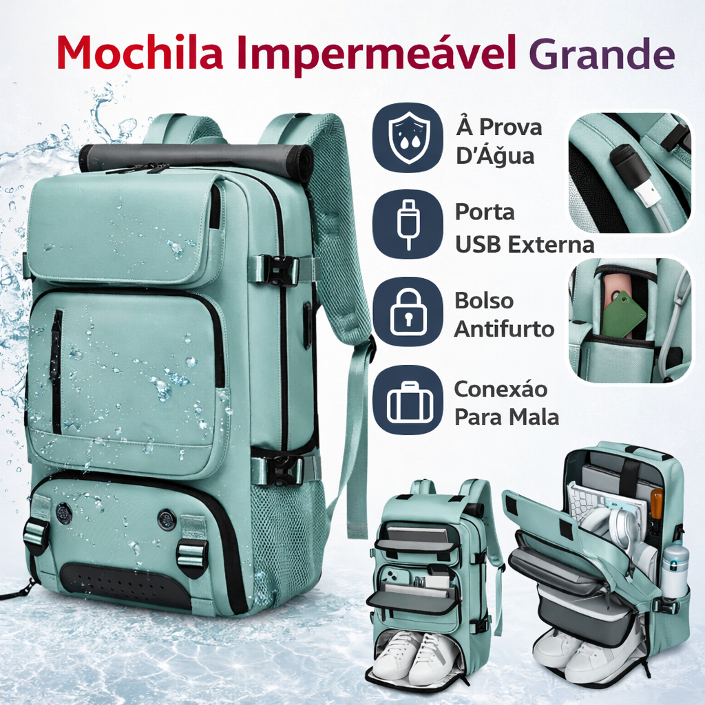 Comprar na ShopeeMochila Impermeavel Viral Grande Multifuncional Viagem Bolsa Mala em Nylon com USB 30L