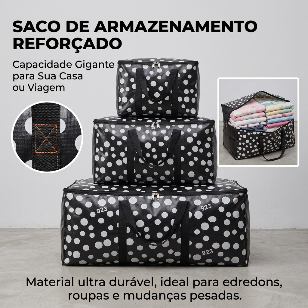 Kit 3 Sacolão Grande Reforçado com Zíper para Viagem, Compras, Mudanças e Organização - Cor Sortida