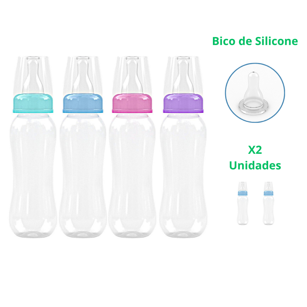 Comprar na ShopeeKit 2 Mamadeiras 240ml Bebê Menino Menina Saquinho - Bico de Silicone