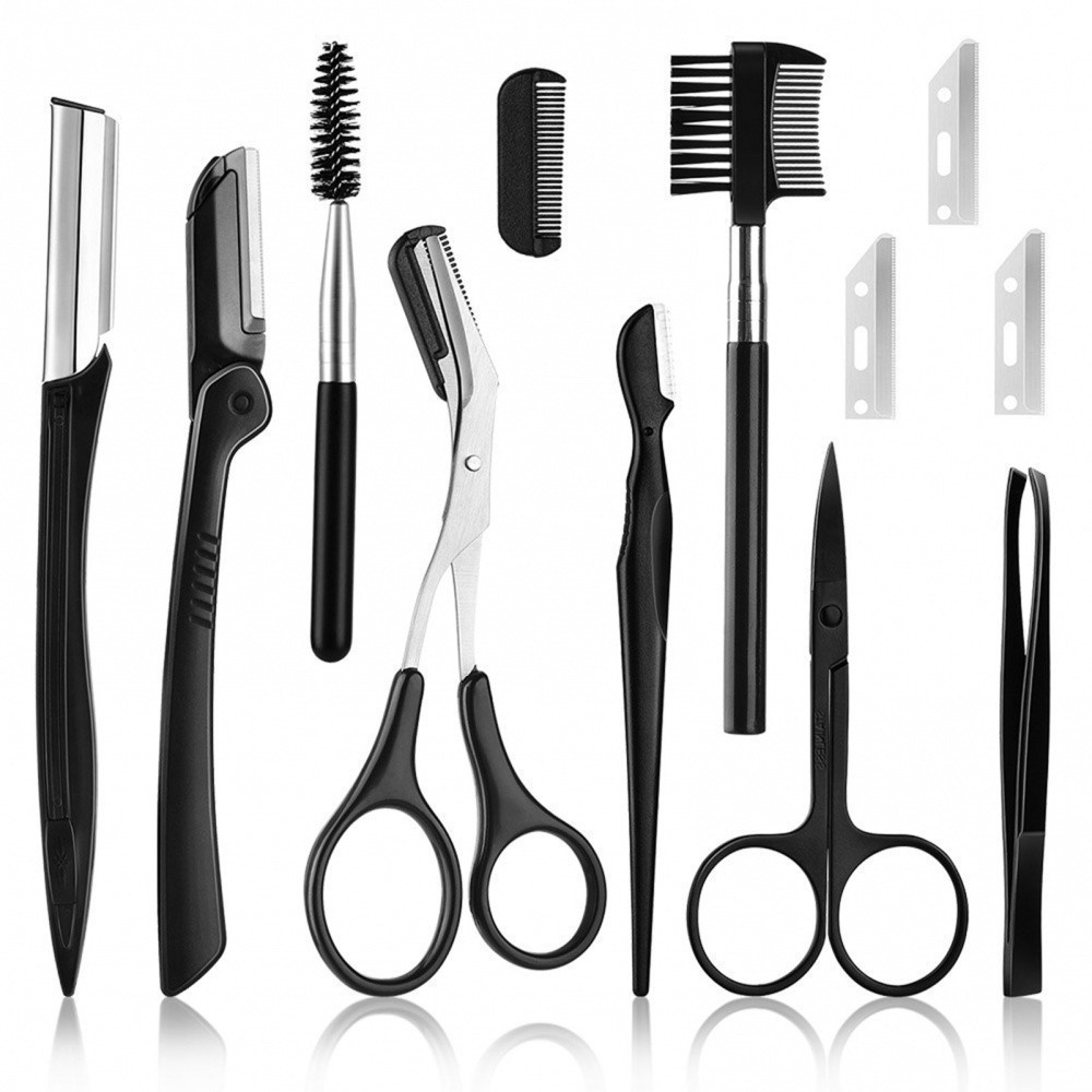 Comprar na ShopeeKit de Aparador de Sobrancelha 11 Unidades Mulheres Inclui Facial Face Razors Eyebrow Escova Tesoura Pinça