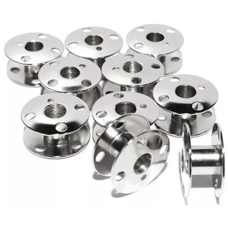 Kit com 10 Bobinas Carretilha Metal BAIXA para Máquina Doméstica - Singer/Elgin/Janome