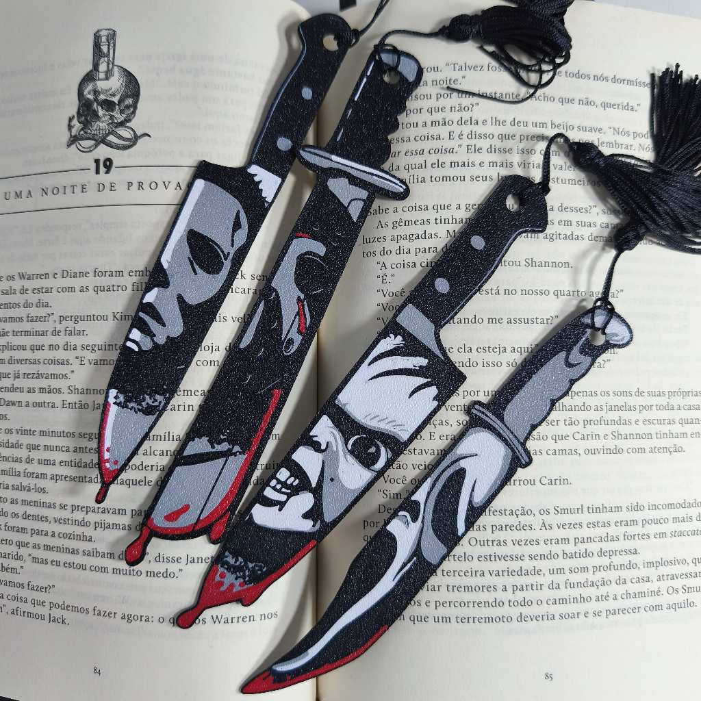 Comprar na ShopeeMarcador de Página Terror Facas Slasher 3D Vilões do terror– Michael Myers, Ghostface, Jason e Chucky | Geek Horror