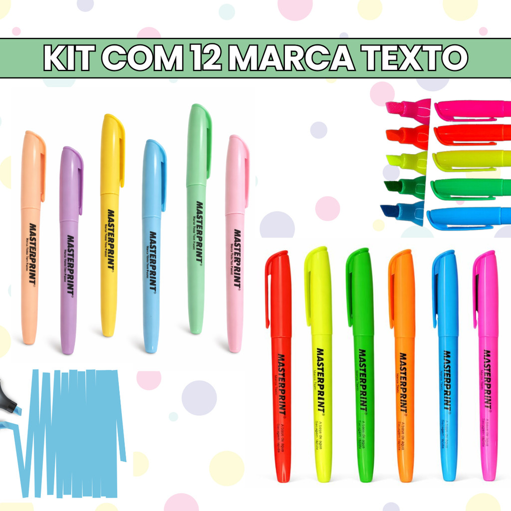 Comprar na ShopeeKit 12 Marca Texto Neon + Pastel Masterprint Escolar Escritório
