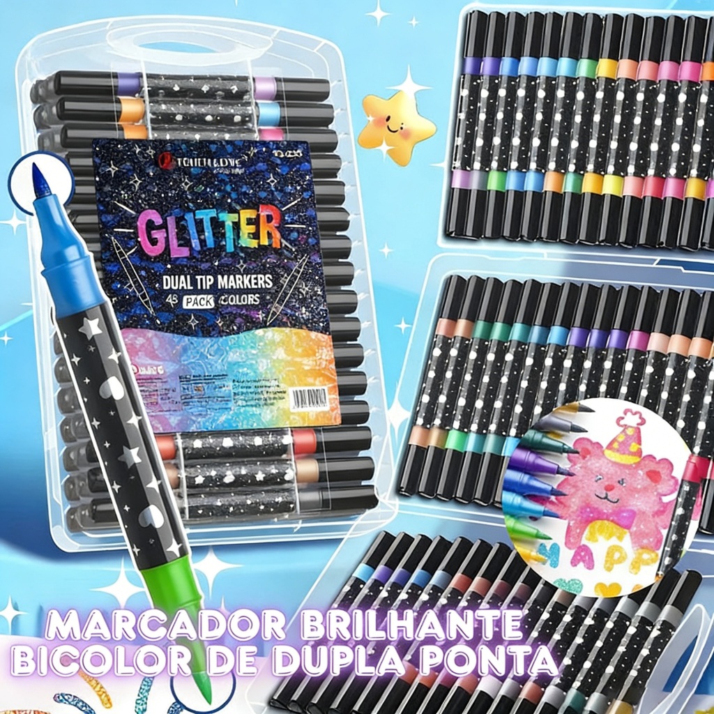 Comprar na ShopeeCaneta Marcadora Glitter Dupla Ponta 48/72/96 Cores | Arte, Escola, Planner, Desenho