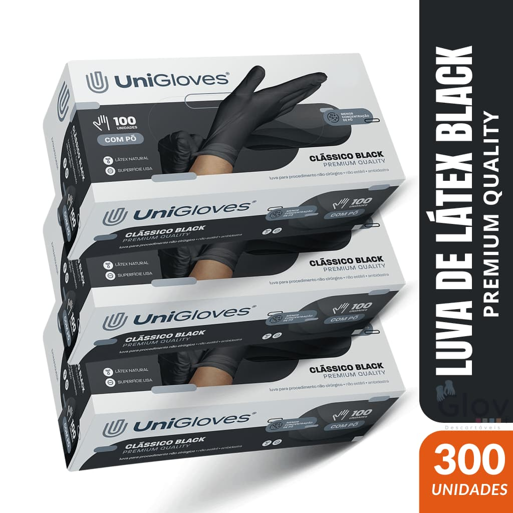 Luva Látex Descartável Combo 03 Caixas com Pó - 300 Unidades UniGloves