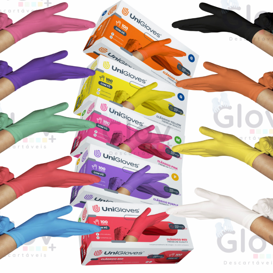 KIT 08 CORES Luvas de Látex Coloridas Sortidas Caixa com 100 Unidades