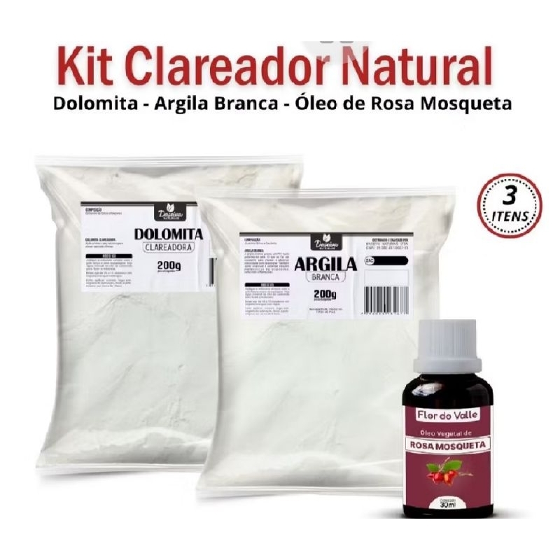 DOLOMITA Clareadora 200g + Argila branca 200g + Óleo de Rosa MOSQUETA Rubignosa 30ml
