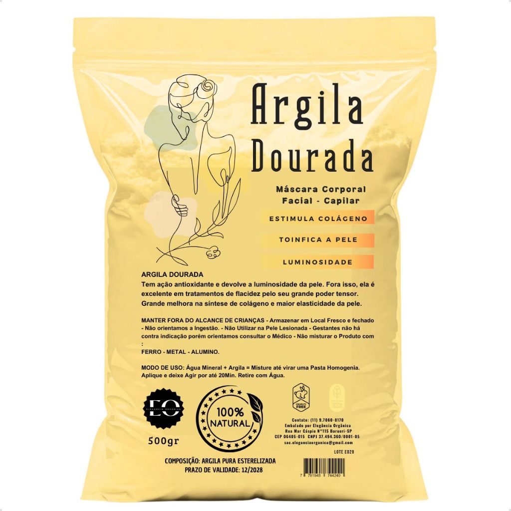 Skin Care Mascara Facial Argila Dourada 500g Linhas de Expressão Colageno 100% Natural Organica