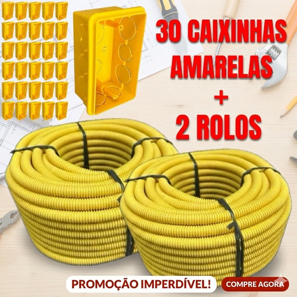 Comprar na ShopeeConduíte Eletroduto Corrugado Kit 2 Unidades + 30 Caixinhas Amarela 4x2