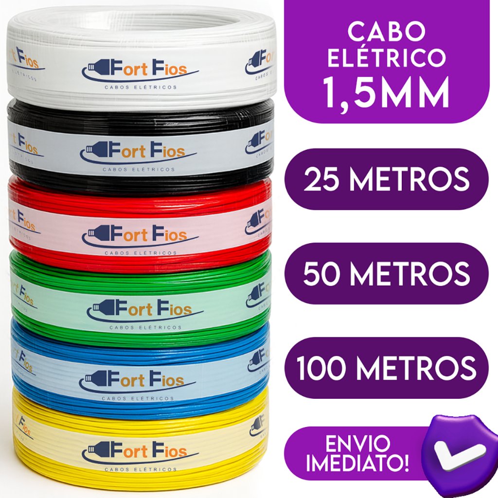 Comprar na ShopeeFio Elétrico 1,5mm Cabo Flexível 1 5mm Rolo Com 25 50 e 100 Metros Anti-chamas 750v