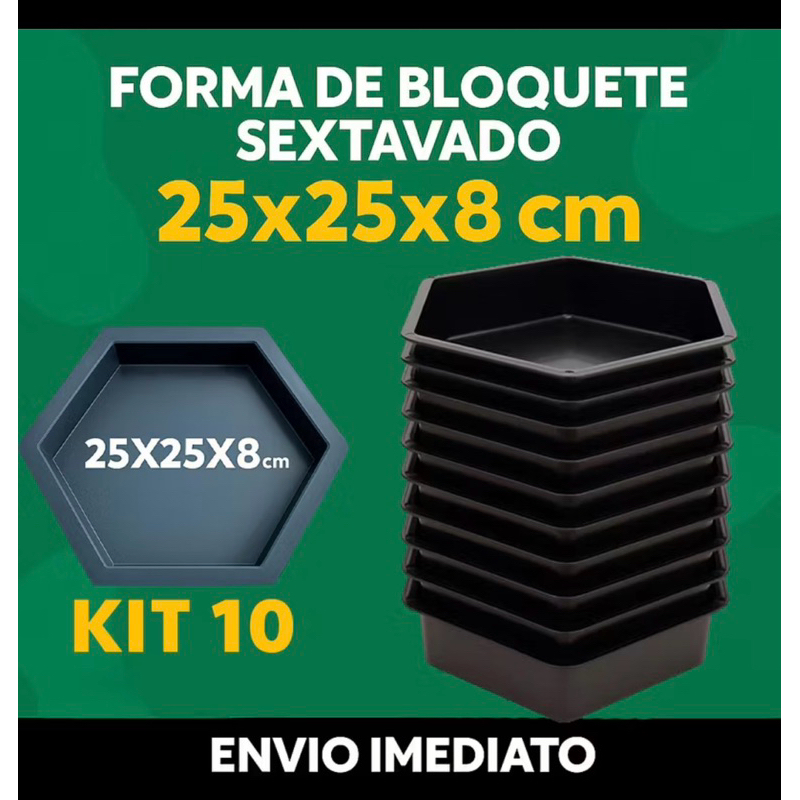 Kit 10 forma lisa para fabricar piso de bloquete forma sextavada construção grande concreto envio já