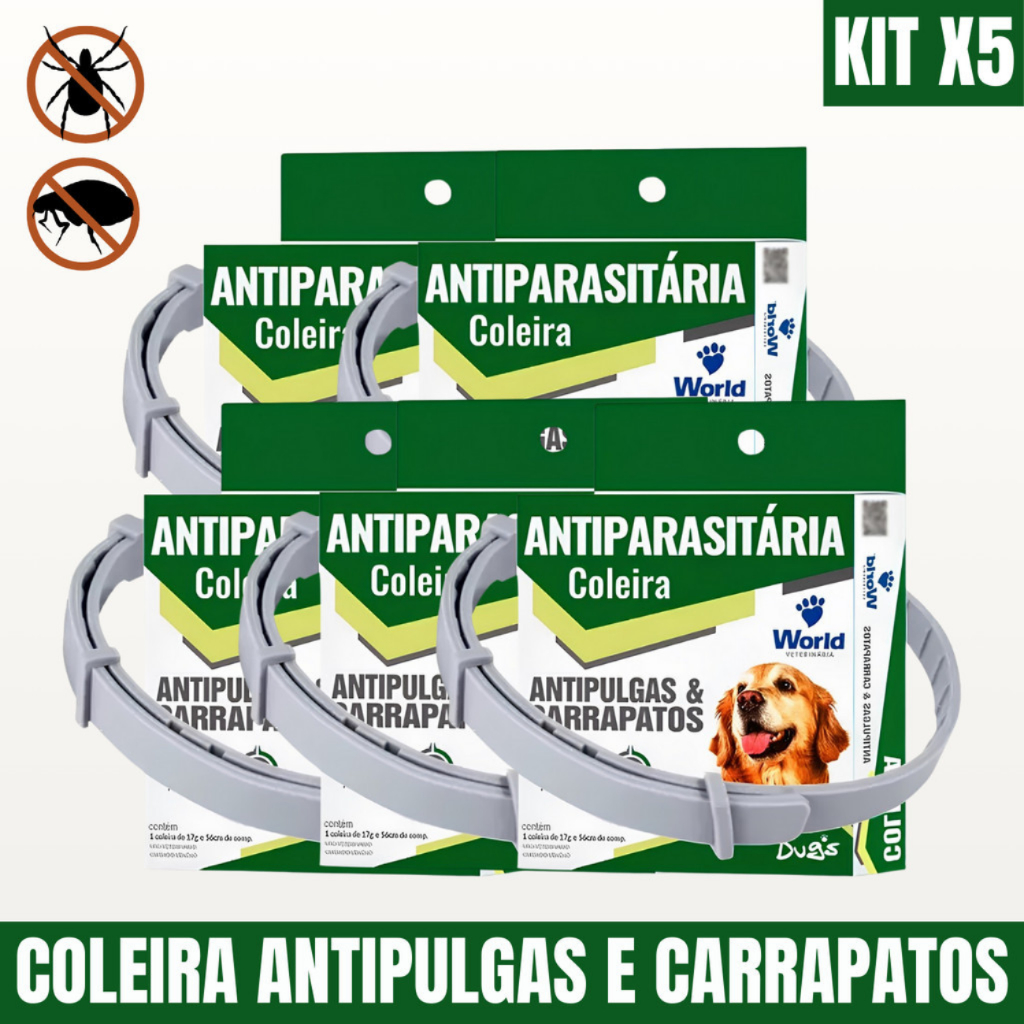 Comprar na Shopee5 Coleiras Dugs Antipulgas e Carrapatos World Veterinária Antiparasitária Cães