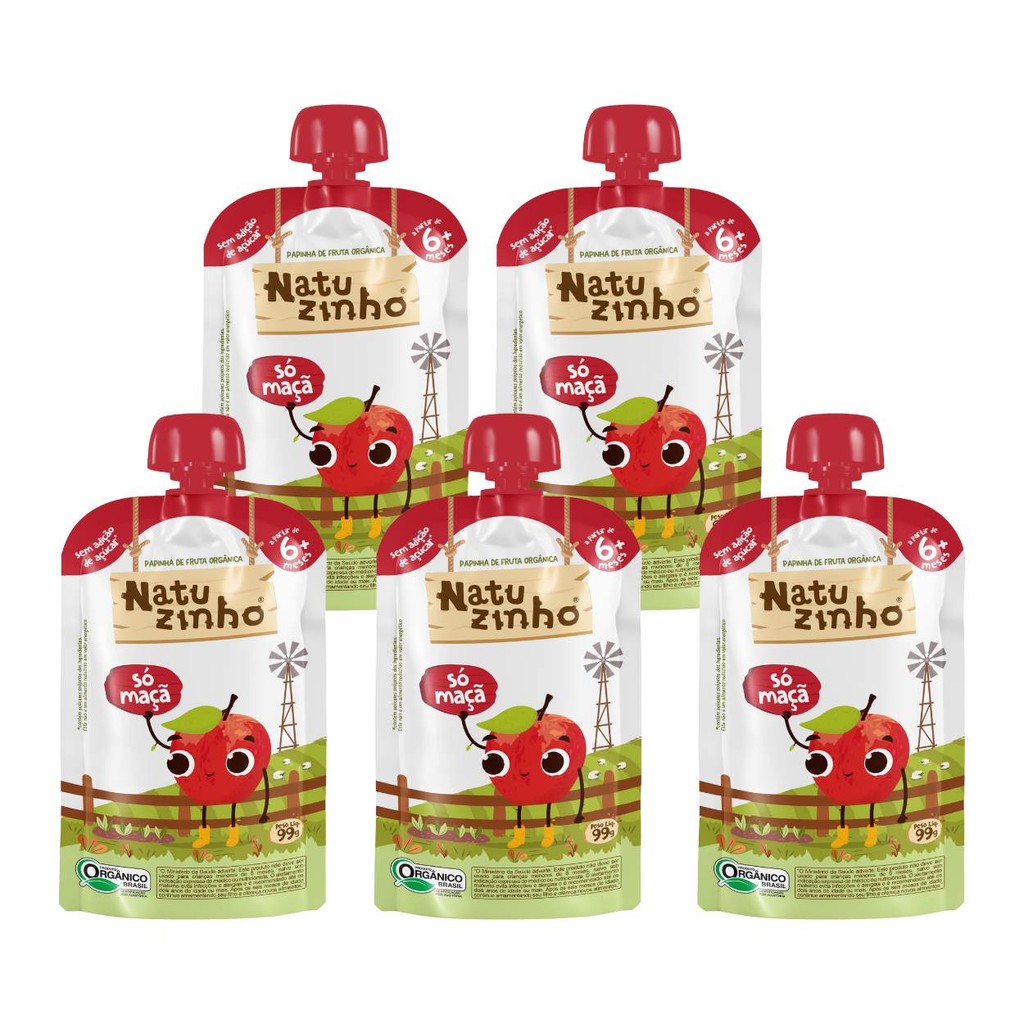 Kit Papinha Organica Natuzinho Maça Bebe 5 unidades