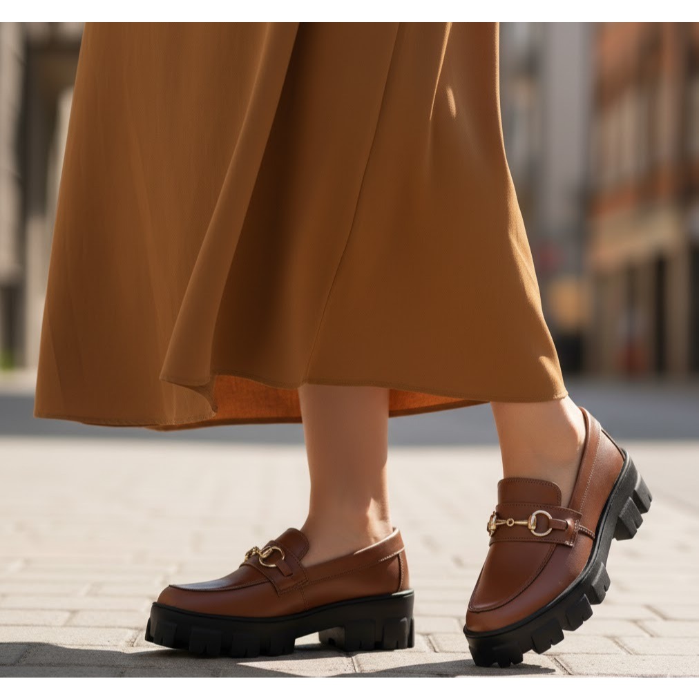 Comprar na ShopeeMocassim Feminino GiGiL Teen Tratorado Sapato Fivela Flatform Calce Fácil Detalhe Moda Atual Confortável