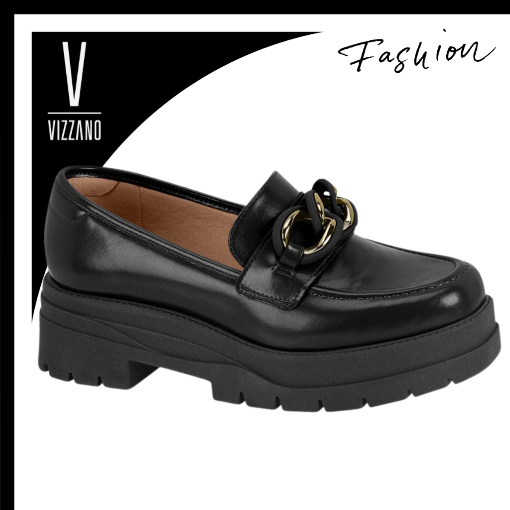 Sapato Mocassim Vizzano Tratorado Feminino Loafer Com Corrente Casual Confortável