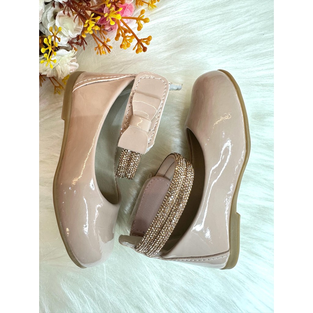 Sapatinho Nude Tiras Com Strass e Aplique de Lacinho tam 28-34