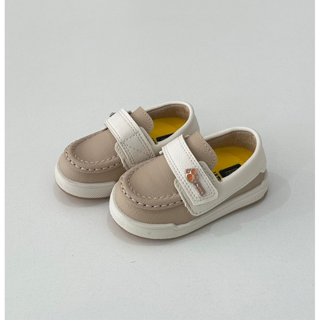 Mocassim Klin Infantil Bege e Branco com Velcro Confortável e Elegante